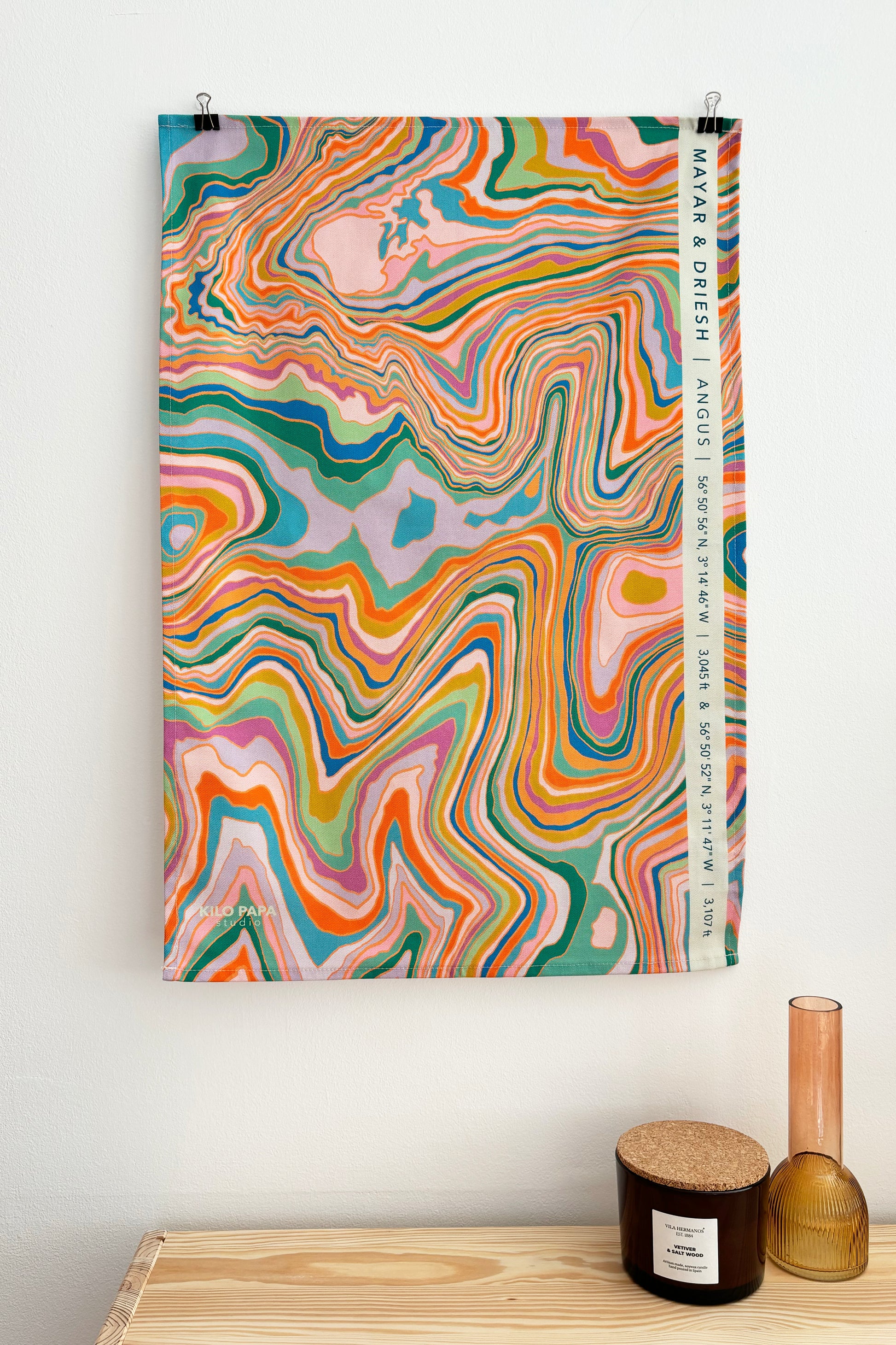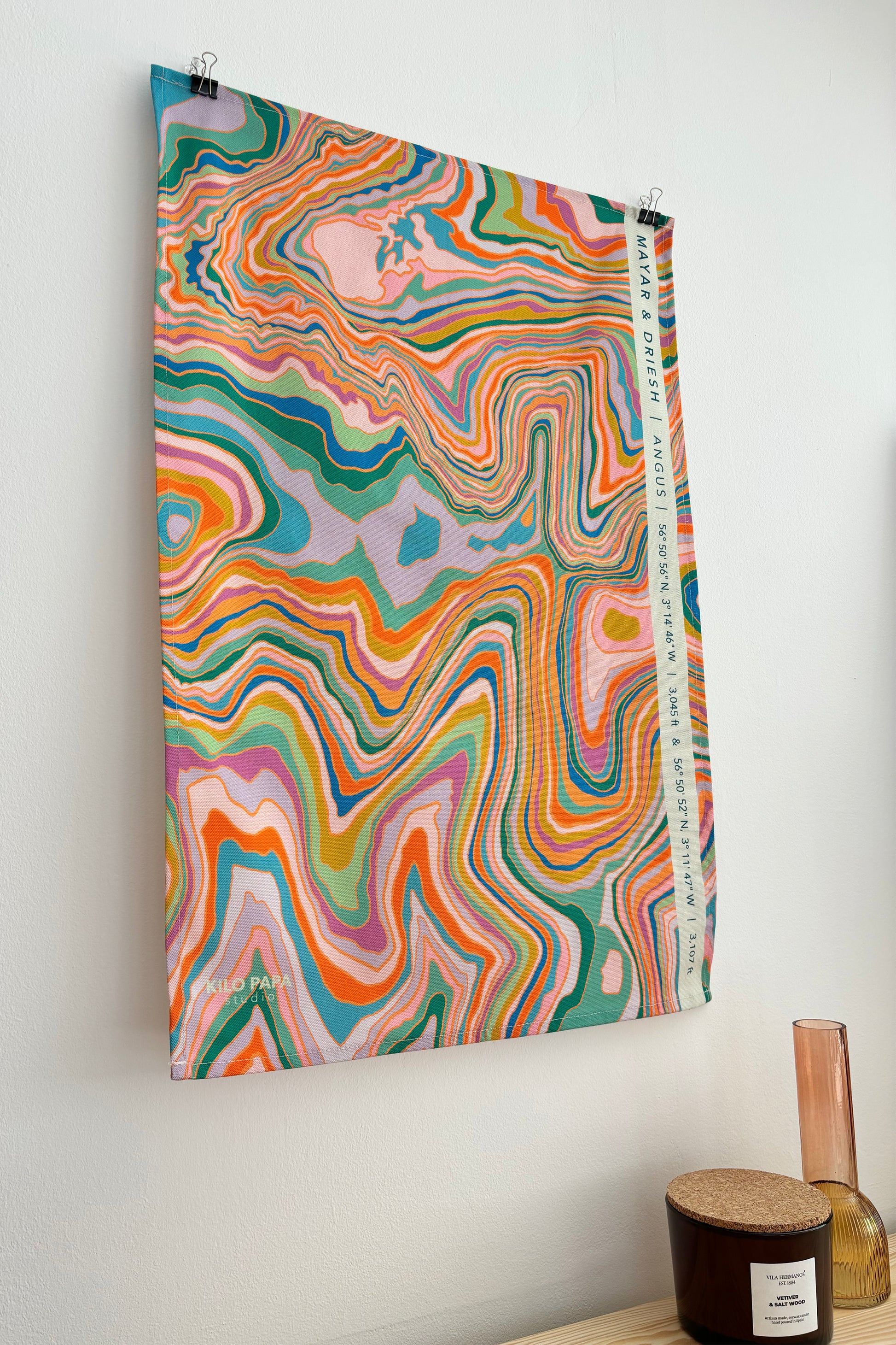 Taken from my colourful topographical map series, this design has been digitally printed onto 100% cotton and made into a tea towel.